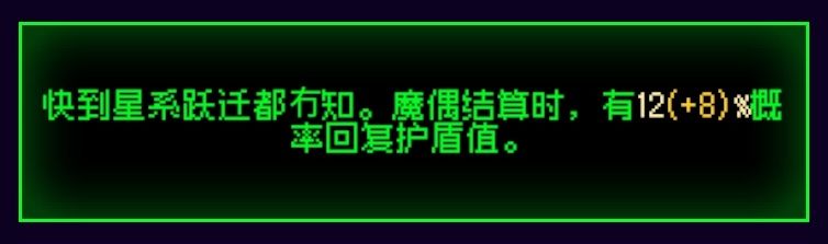 毒一的固态硬盘,效果与其类似,但是是依靠魔偶结算来几率回盾,不过几率偏低,适合用于能频繁触发魔偶结算的情况(如噪音模组)。