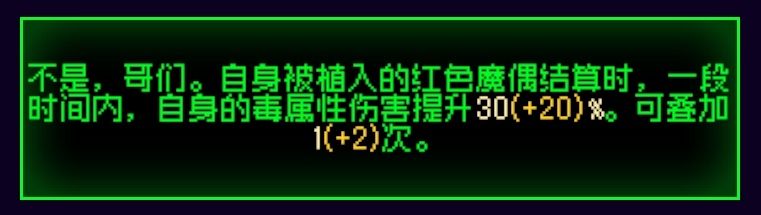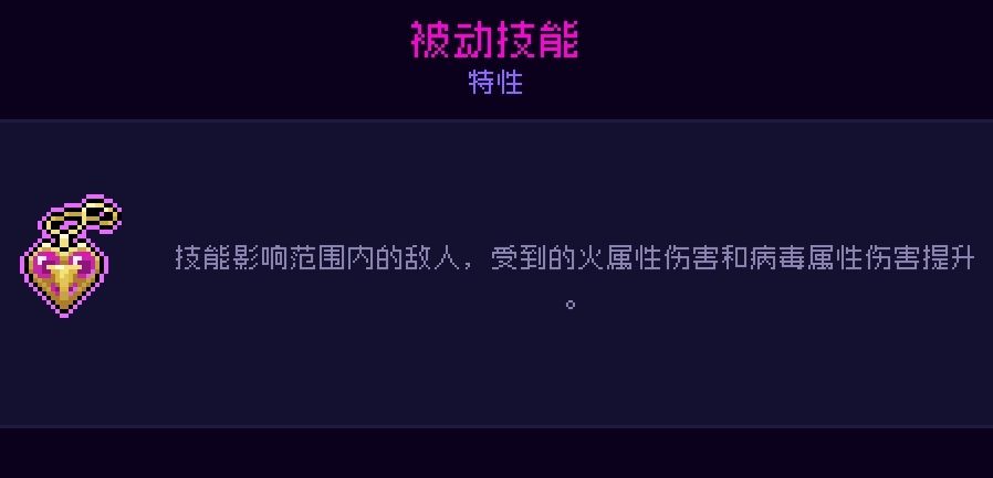 没错,就是这个被动,大部分人第一眼看可能觉得一般,但请注意,其描述是敌人受到的火毒伤害提升,没错,这是易伤加成!并且是可以叠加的!