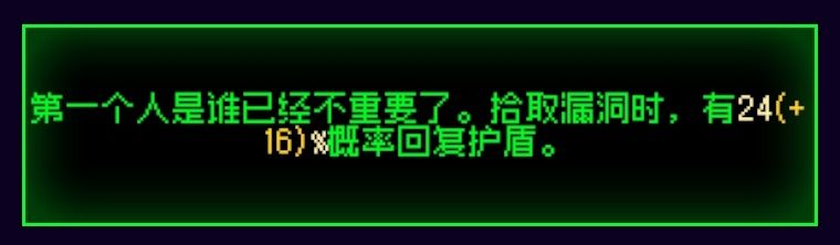 深渊行者套里唯一的续航道具,依靠拾取漏洞来几率回盾,可以配合深渊行者3件套的红色漏洞来触发回盾。