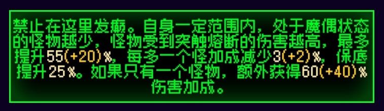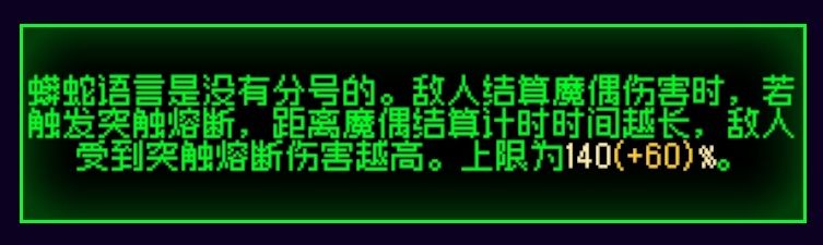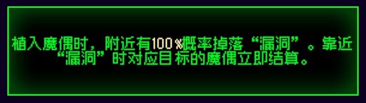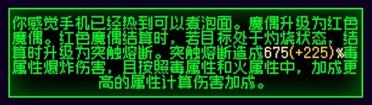简单直白的增伤,根据魔偶所剩时间提升熔断突触伤害,但需要搭配一些能使魔偶提前结算的手段,如能生产漏洞的道具/噪音。