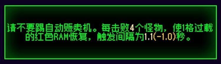 这里需要提到深渊行者里的一个道具,学院警卫,该道具的效果是击杀一定数量怪物可将RAM由红转绿,第一眼可能觉得这道具没什么用,但其实是为模组噪音量身定做的,因为噪音进入超频模式后正常是只能等超频状态结束才能再次开启超频,中间必然会存在间隙,但只要携带这个道具,然后在需要频繁打怪的模式里,通过杀怪将RAM全部变绿,就能提前再次开启超频!