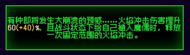 深渊行者的核心道具,效果是将挂有灼烧状态的敌人,其身上的魔偶结算时升级为范围伤害的突触熔断。