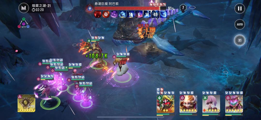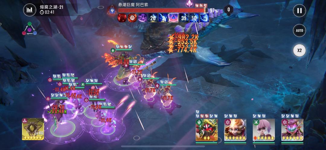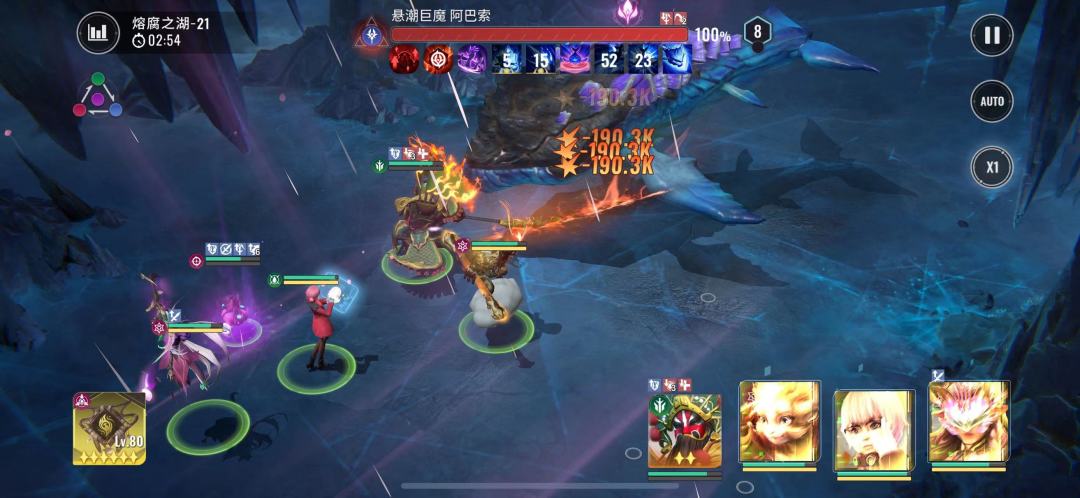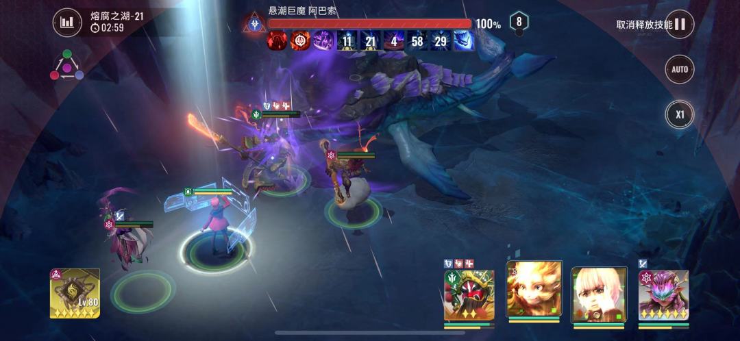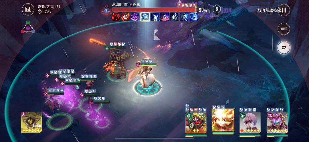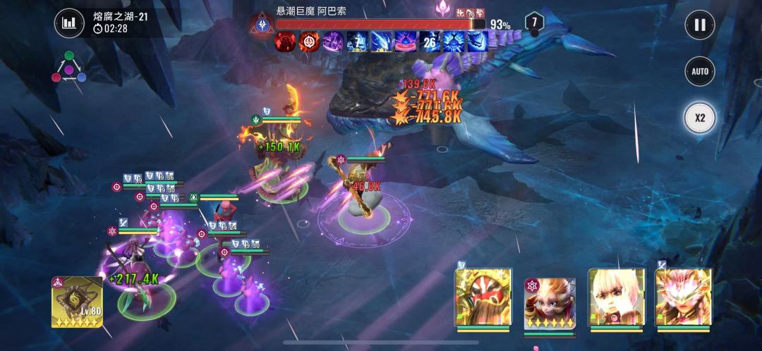 2:20boss再次释放昏灼巨浪,此时我们猴子没有能量无法释放技能,且全员能量清空,看着他们自由搏击就行