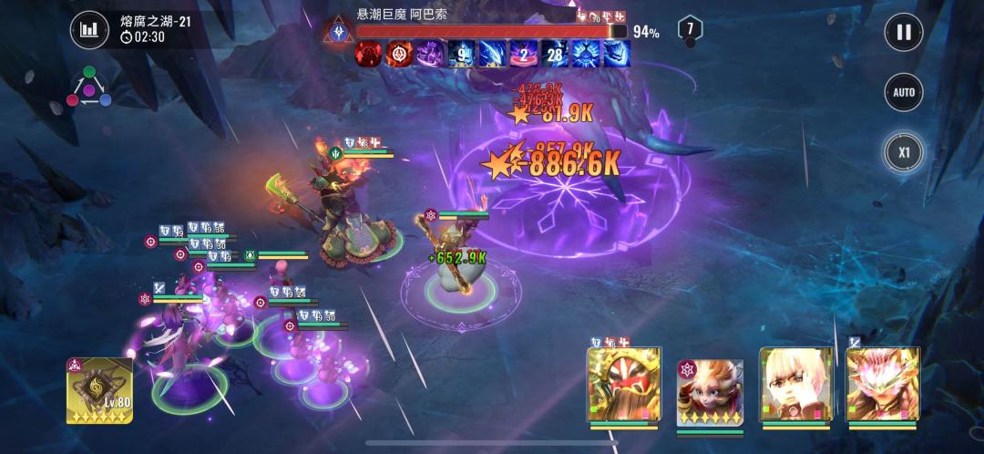 2:30boss释放完陨星暗涌, 除了猴子身上有光环无法回能其他角色技能均刷新,依然是先释放粉毛技能然后关羽和桃