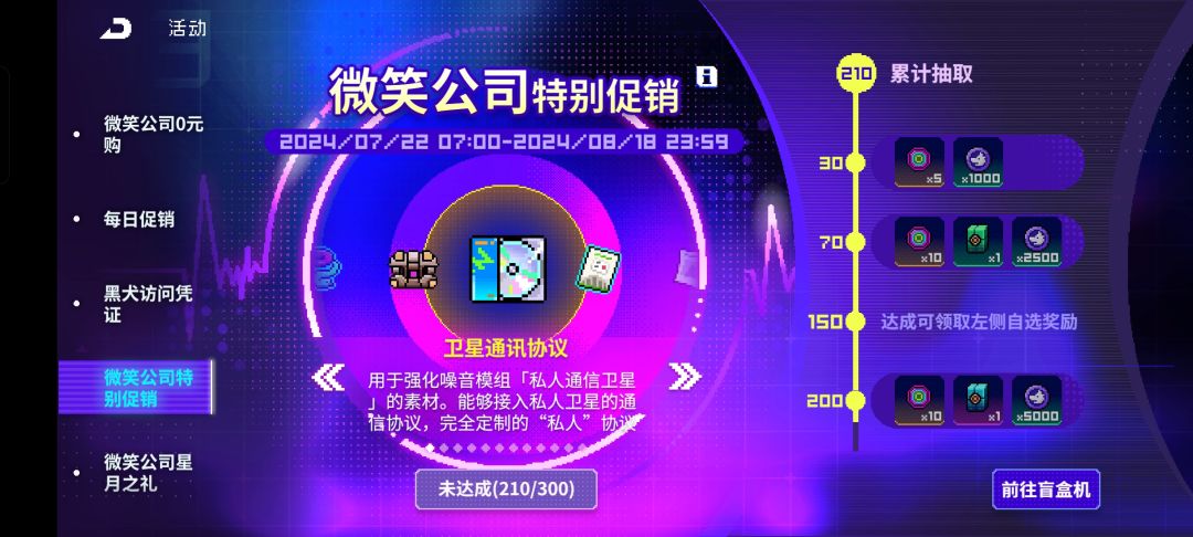 150-300为一个跨度,可获得霓虹币*25,自选礼包*1