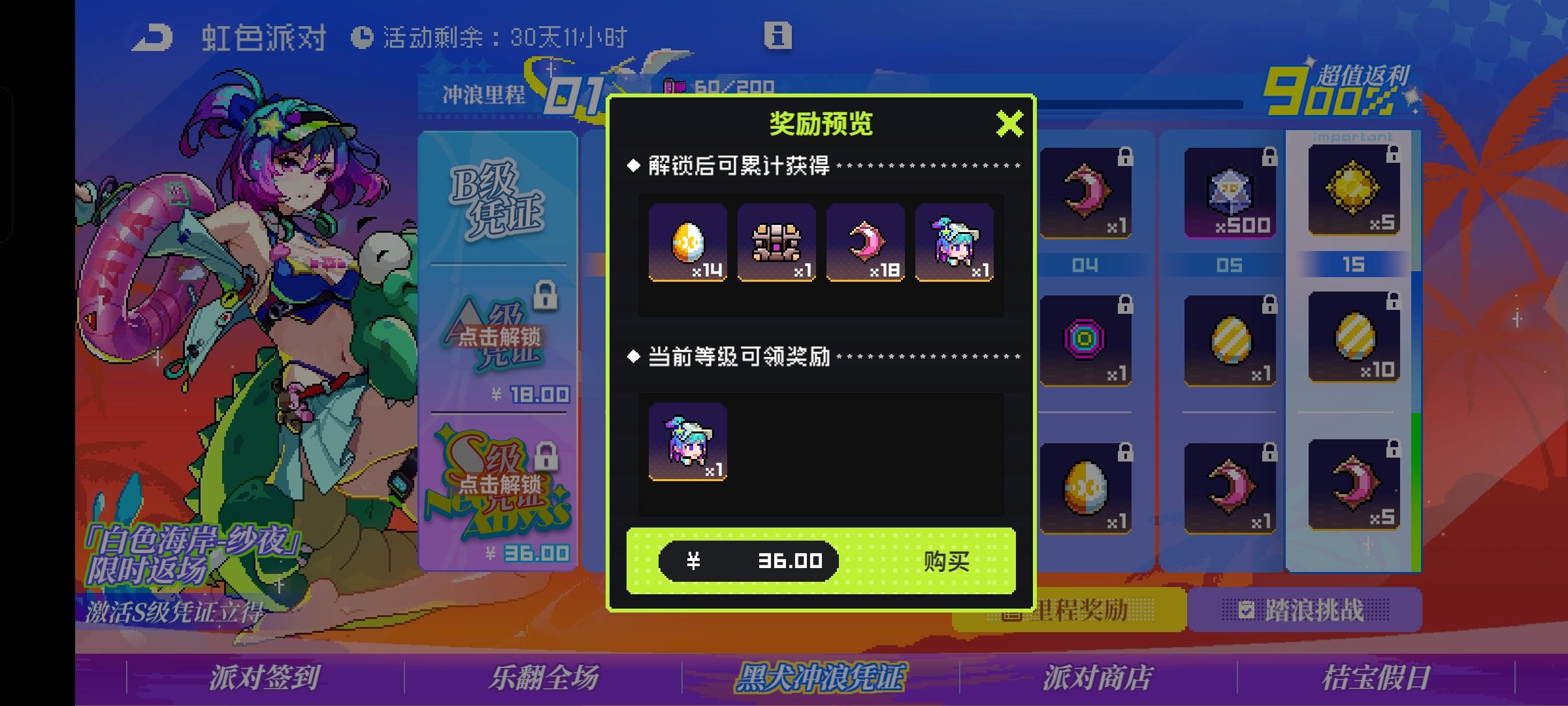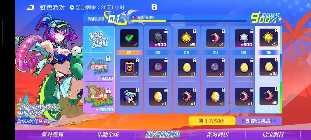 B档位(白嫖)可获得:霓虹币*5,月亮币*5,太阳石*30,小型孵化舱*10