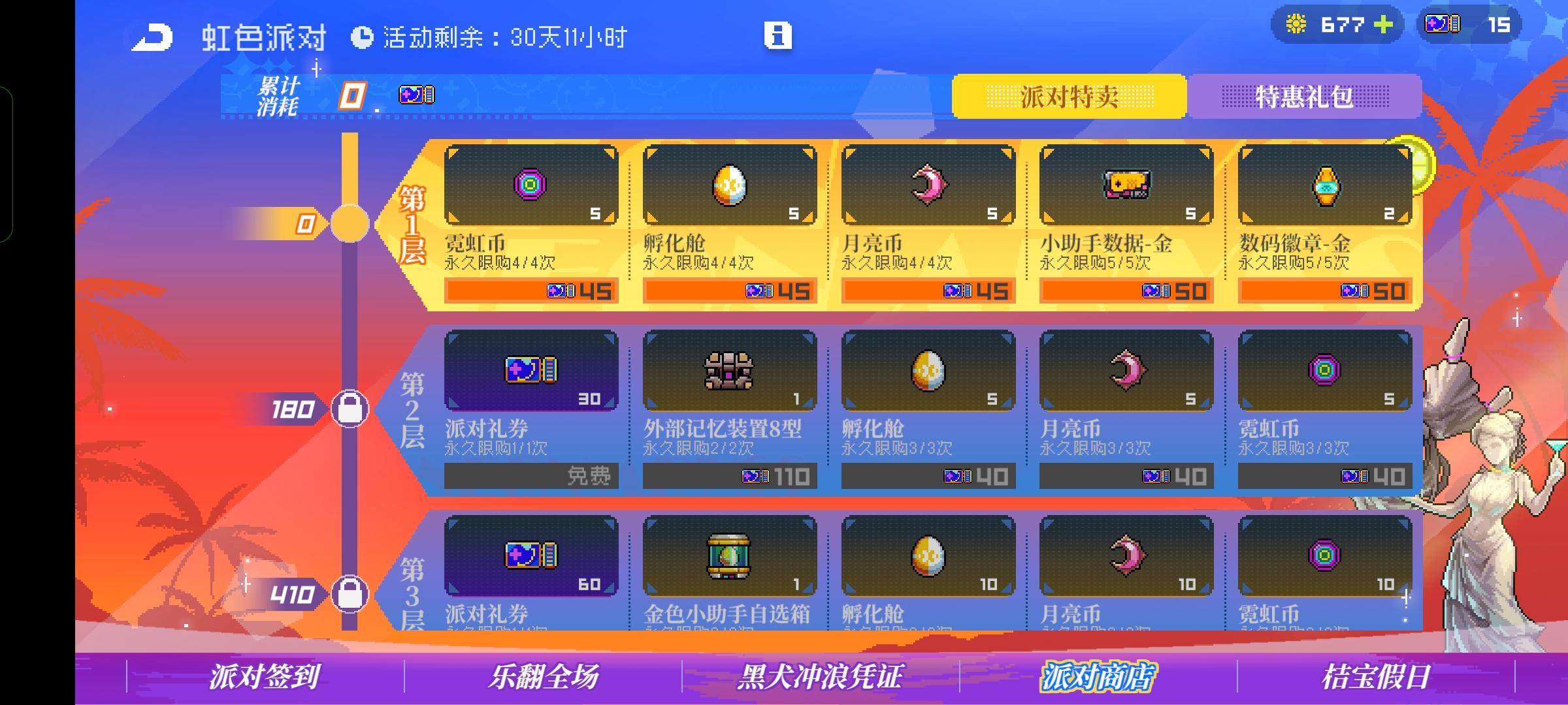 该玩法该玩法的规则就是,累积消耗派对券,消耗到一定数量,可以解锁新层数,累计5层,每开启一个新层数,可以白嫖派对礼券(初始层数不可白嫖)