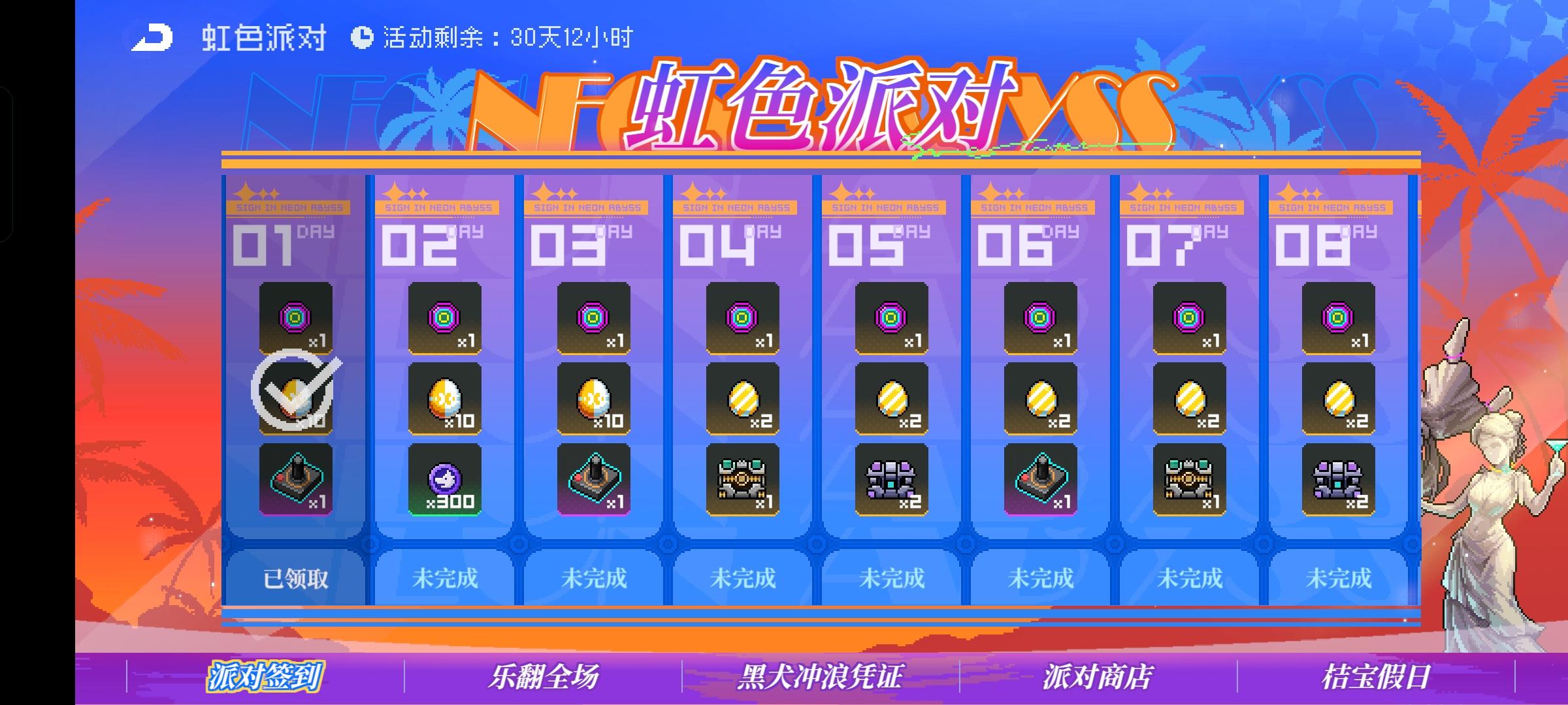共24天,可获得霓虹币*24,孵化仓*30,小型孵化仓2*21=42,雅达*3