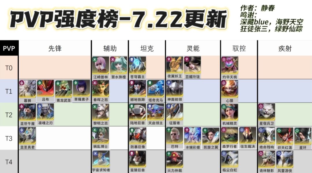 大家好呀我是静春~上一次梯度榜已经是将近两个月前了,正好近期几个新英雄都对PVP环境产生了极大的影响,这次就先把新版的PVP强度榜更新一下,希望能对各位小伙伴有帮助!