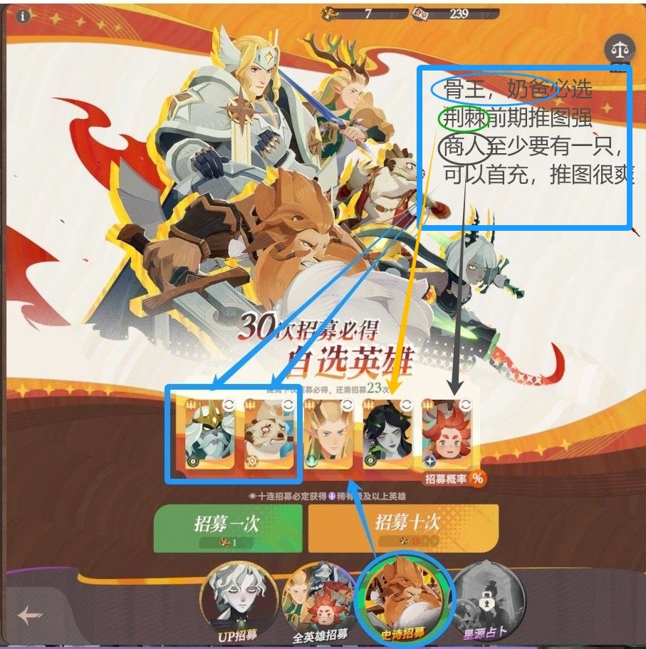 新手【普通卡池】第一个十连必出【荆棘】、第三抽必出【奶爸】【荷叶】还有【其他】两只辅助,我们刷【初始号】唯一的操作空间就是这第30抽,如果非要刷 【 国际共识】是建议刷出【奶爸】,这样一路都会比较顺畅,羁绊也好搭配!