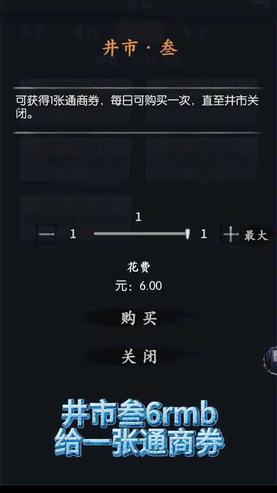 1元宝以及240元宝 (5*2)=1205元宝+10通商券