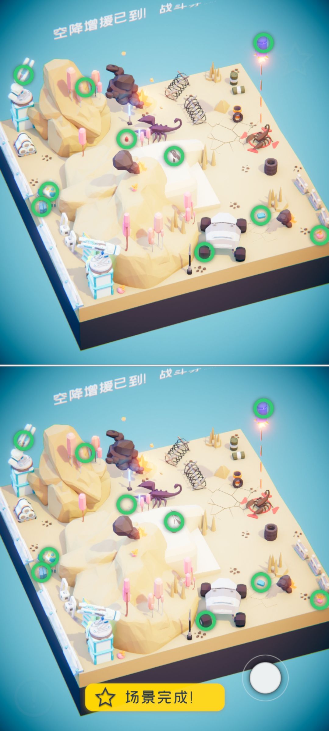 本款游戏是一款独特的找茬游戏。其核心玩法在于在精美设计的3D场景中寻找并指出其中差异的道具,相对于经典2D找茬游戏的难度,也是大幅提升。作者在游戏界面也提供了提示的按钮,非常河里后续游戏更新,也会跟...