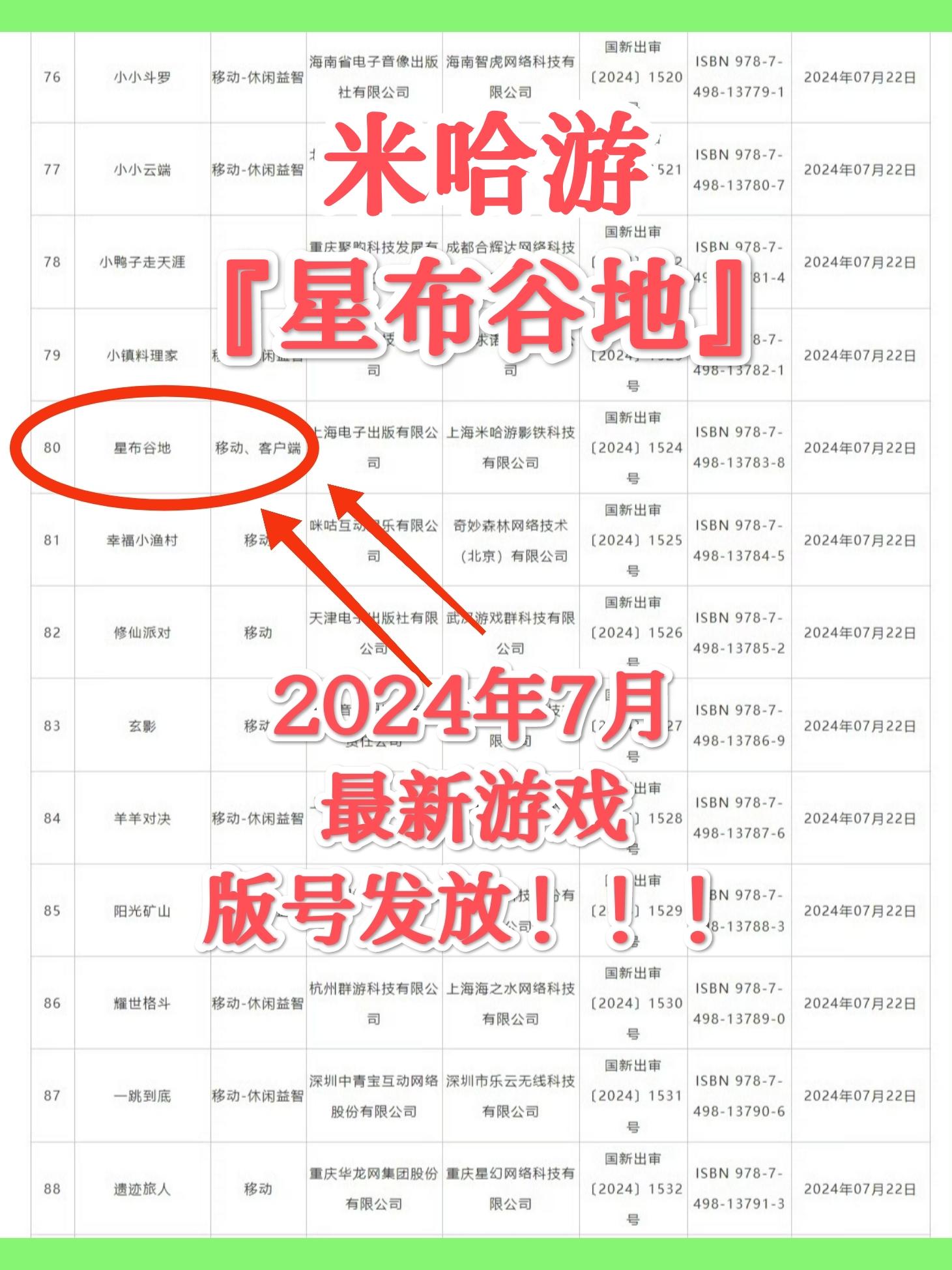 国家新闻出版署公布2024年7月共 105 个游戏过审,7月国产网络游戏审批版号全名单见评论区长图
