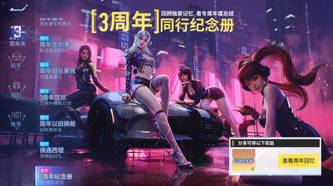 7月26日,车手们可以在3周年同行纪念册中一起回忆与速度节的点点滴滴,我们也为大家准备了三周年纪念称号奖励,记得来看看哦~