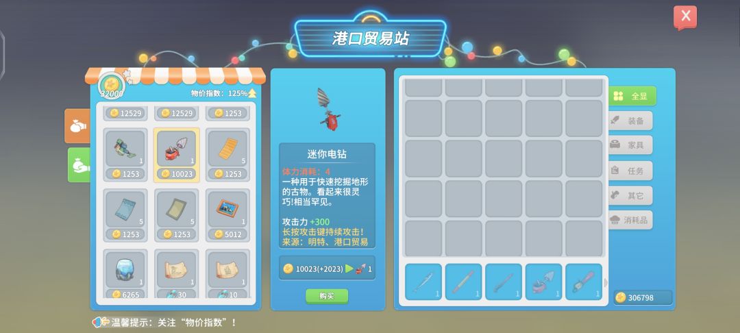 迷你电钻需要在波西亚的港口重建后 在港口购买