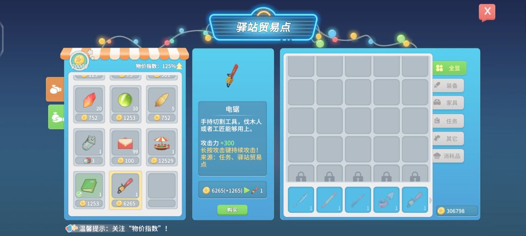 电锯在沙漠的木木旅馆建好后,在木木旅馆购买