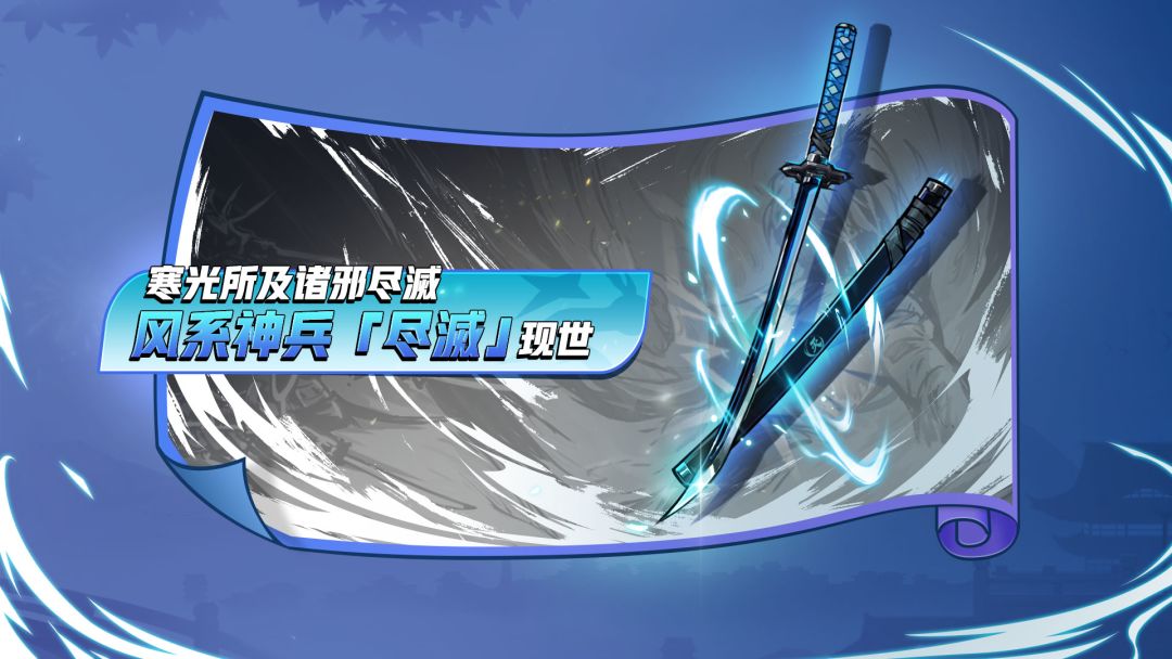 7月25日维护更新后,风系神兵「尽滅」与它的幻化「湮罗」将共同登场,等待忍忍的召唤!