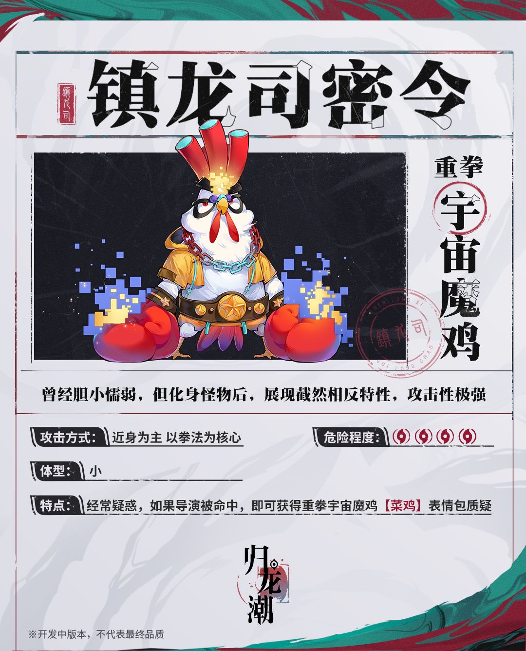 那么,就说好了!7月30日「技术性测试」上线之时,「重拳·宇宙魔鸡」等你来战!