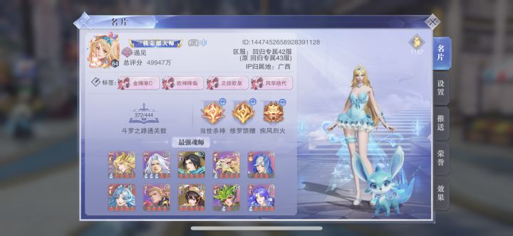角色名:三载荣耀大师(夏)