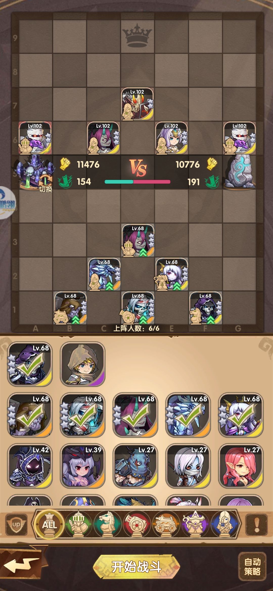 一直都用一套阵容,是6个不同职业,阵容加成有百分13的属性提升