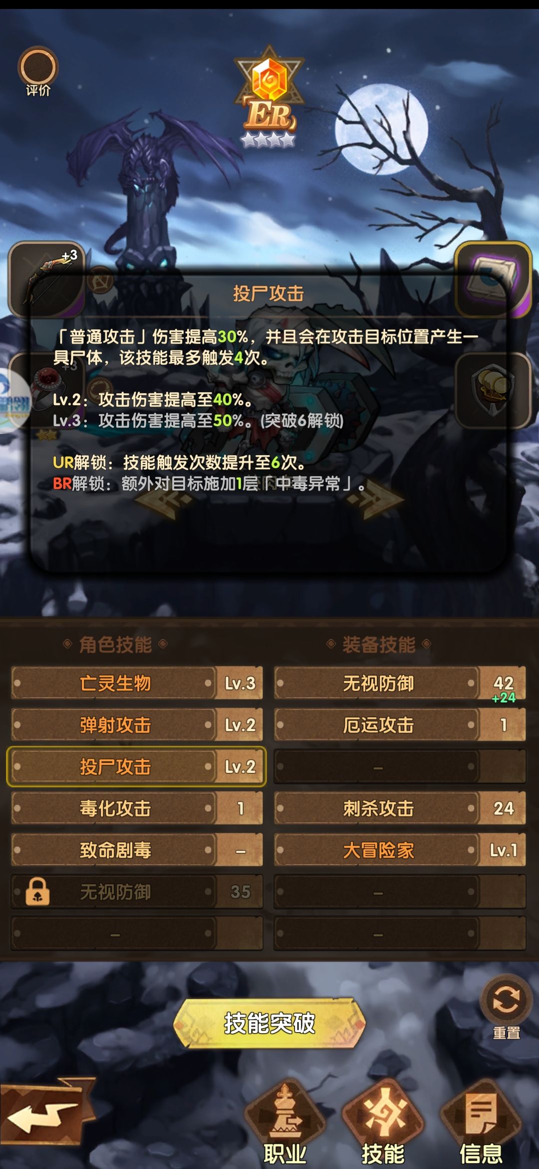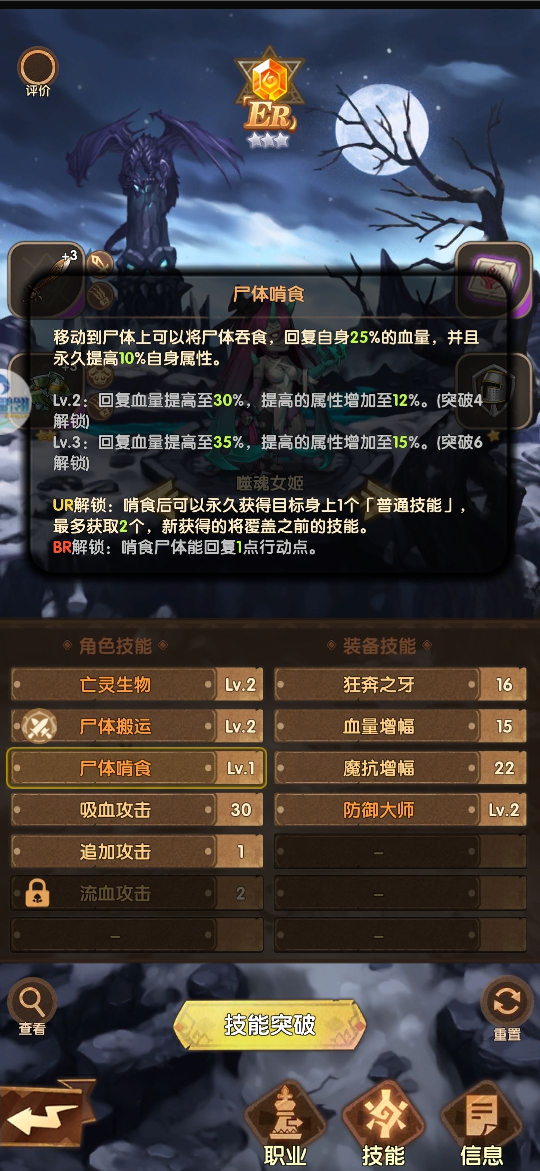 主角我选的骑士,纯辅助,符文带辅助技能,一共算上有5个或者以上辅助技能,毕竟这个游戏是团体作战,其实主要也是给食尸鬼小姐姐加属性,和副奶的作用