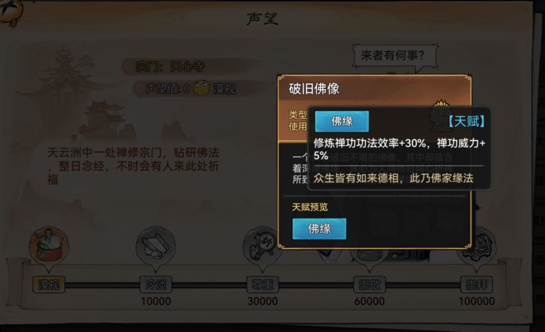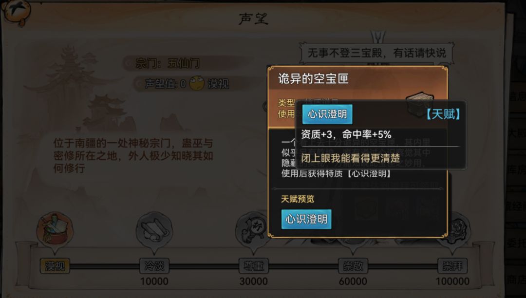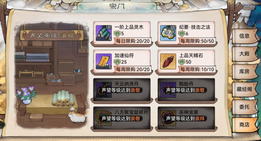 - 宗门战争后附庸的宗门还是可以继续送礼提升好感度,商店重新开放(能屈能伸的NPC)。