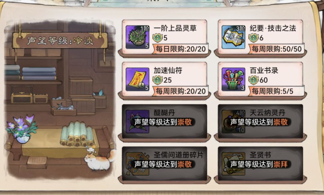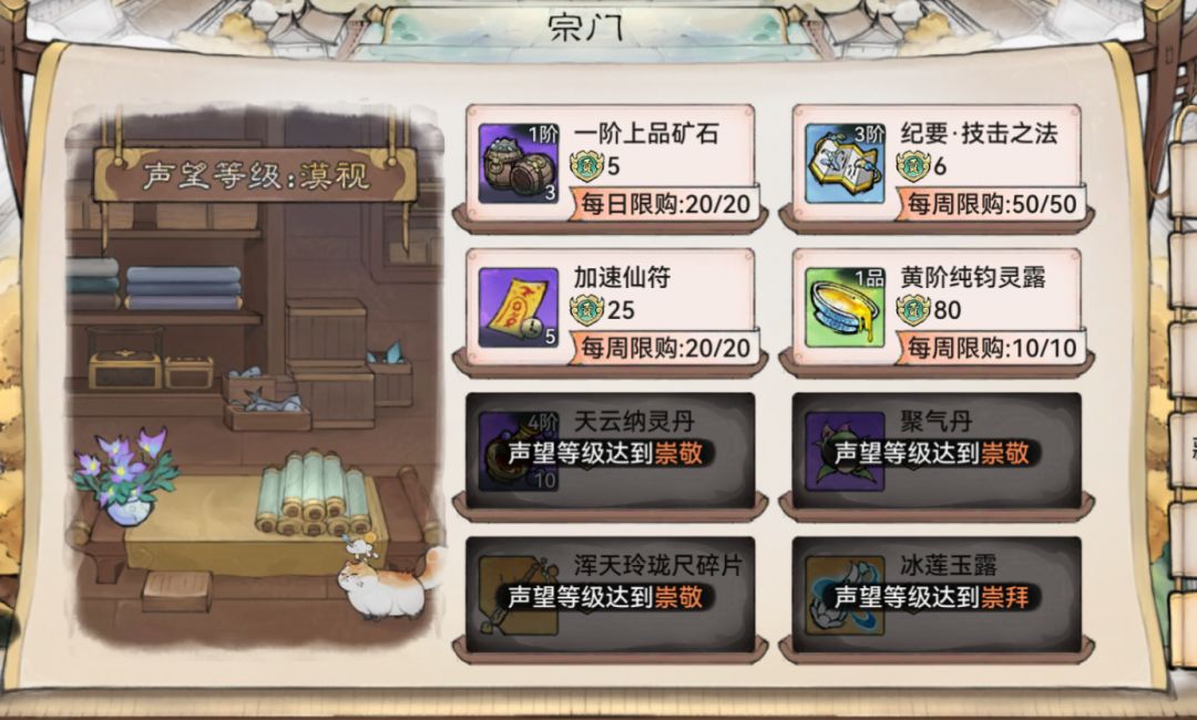 近期热补丁后青云的一阶玄铁让其成为最具性价比的商店,没有之一。建议尽早开出尊重声望拿到8折卡,每天100w灵石兑换10w玄铁,简直不要太爽,另外橙色的精炼石也非常好用,特别到合体期后开放四阶装备,精炼石奇缺。