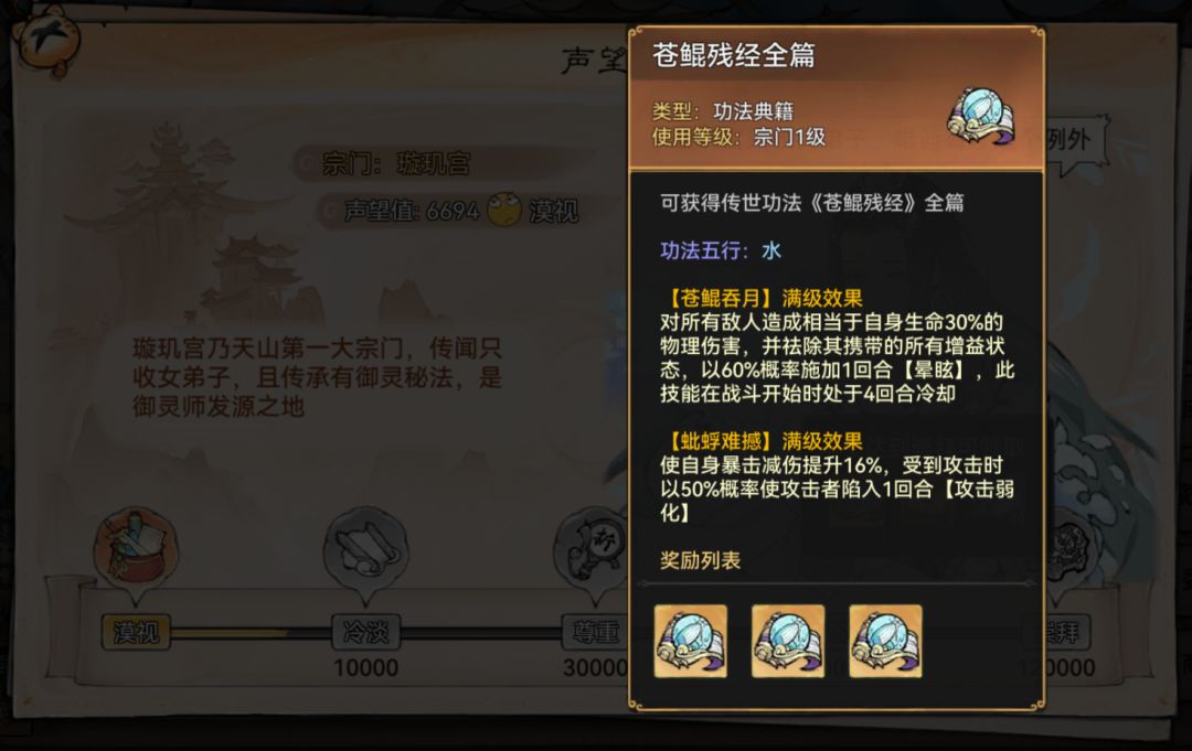 综上阿月比较推荐的送礼宗门是: 青云 > 风雪山庄> 璇玑 > 九黎 > 大夏 。正确打开方式是, 前期玄铁资源缺,每天送青云灵石攒声望与换玄铁,等风雪和璇玑开了,资源也比较充裕,可以再选择适合自己阵容的兑换对应功法。