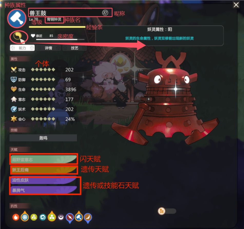 天赋词条后还有9种蛋纹路的划分,分别对应这游戏里面的九种属性: