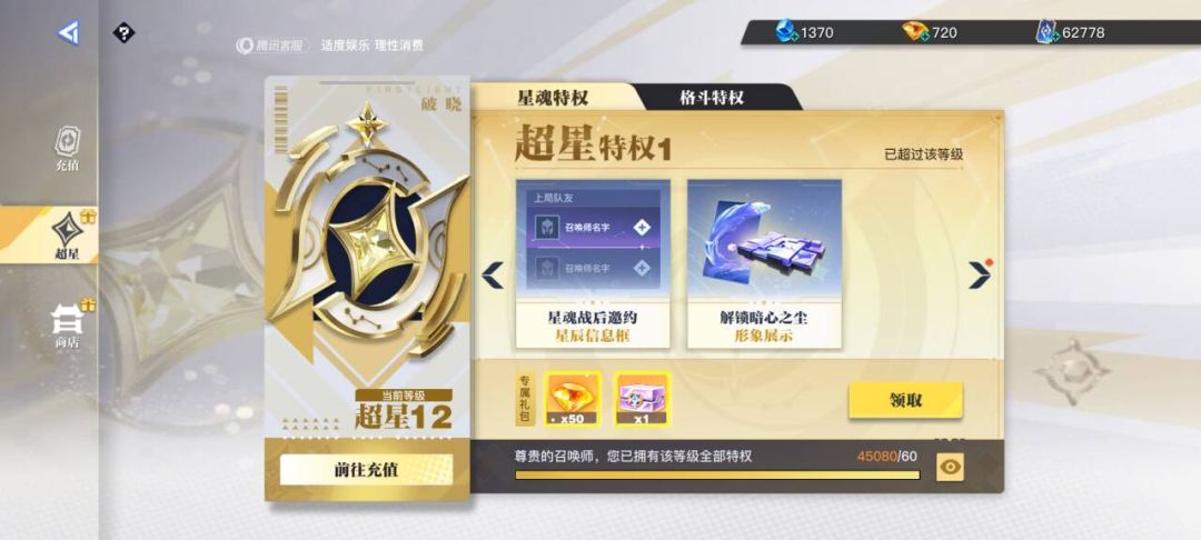 而后续的超星等级提升的奖励均为外观特效和游戏养成资源,对于角色收集党来说这些可以忽略不计,大家可以根据自身实力来进行充值噢!