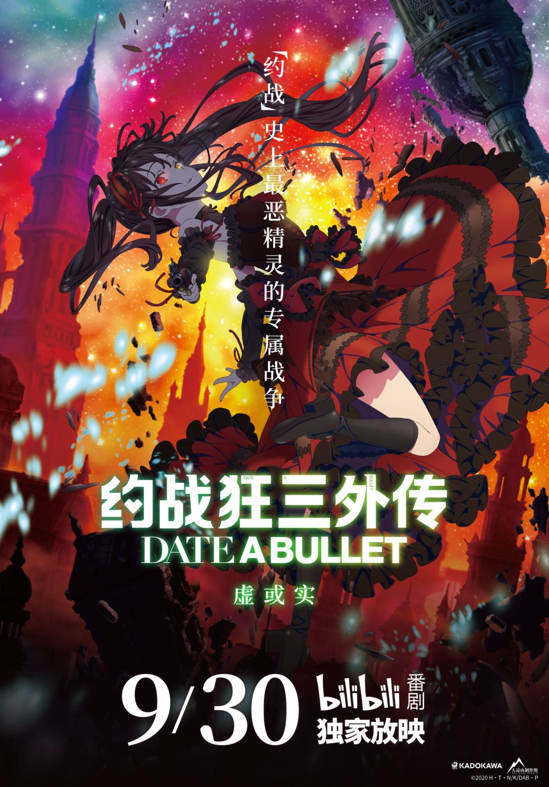 先后在日本全国、中国台湾、中国香港影院上映的短篇动画——《约战狂三外传》虚或实篇,在日本KADOKAWA、bilibili、大凉山制作组和所有支持约战的朋友们共同努力下,将于2020年9月30日零点在bilibili进行独家网络放映啦~