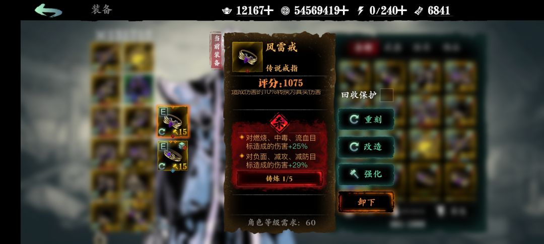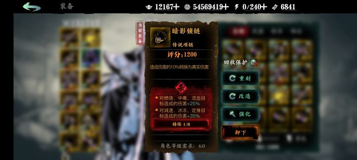1、我用50币子更换了原先的项链,杀意词条从真伤增强+减速独立,改成了两个独立,提升很大,至此,我的手套、项链、双戒指都是独立,共8个独立区间。