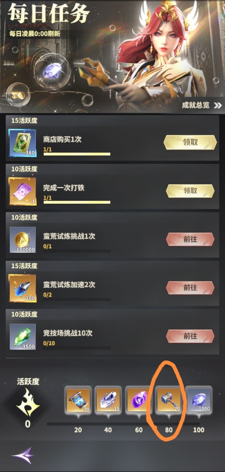 从100钻10个锤子开始,不会叠加昨天的累积次数+钻石。