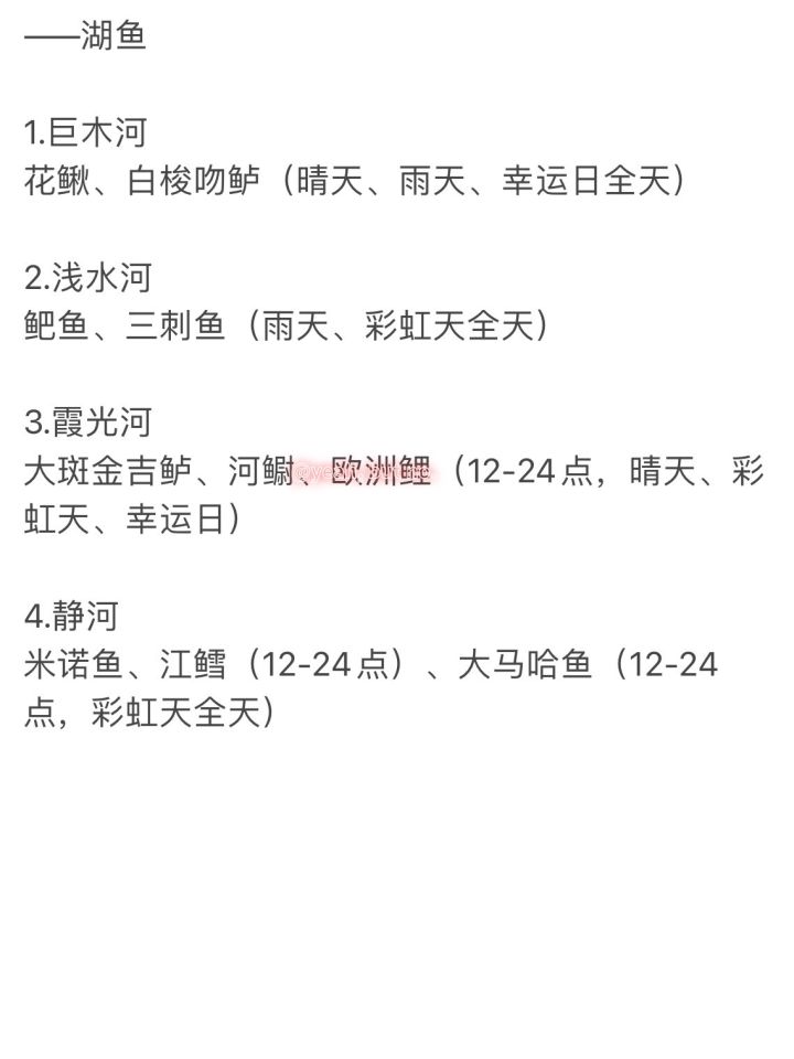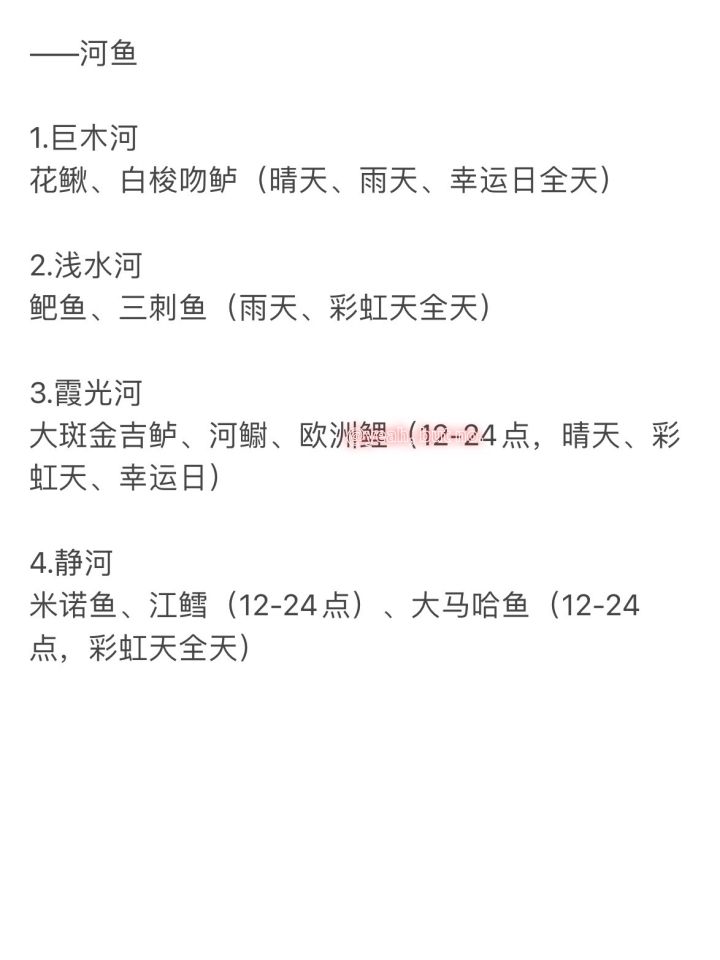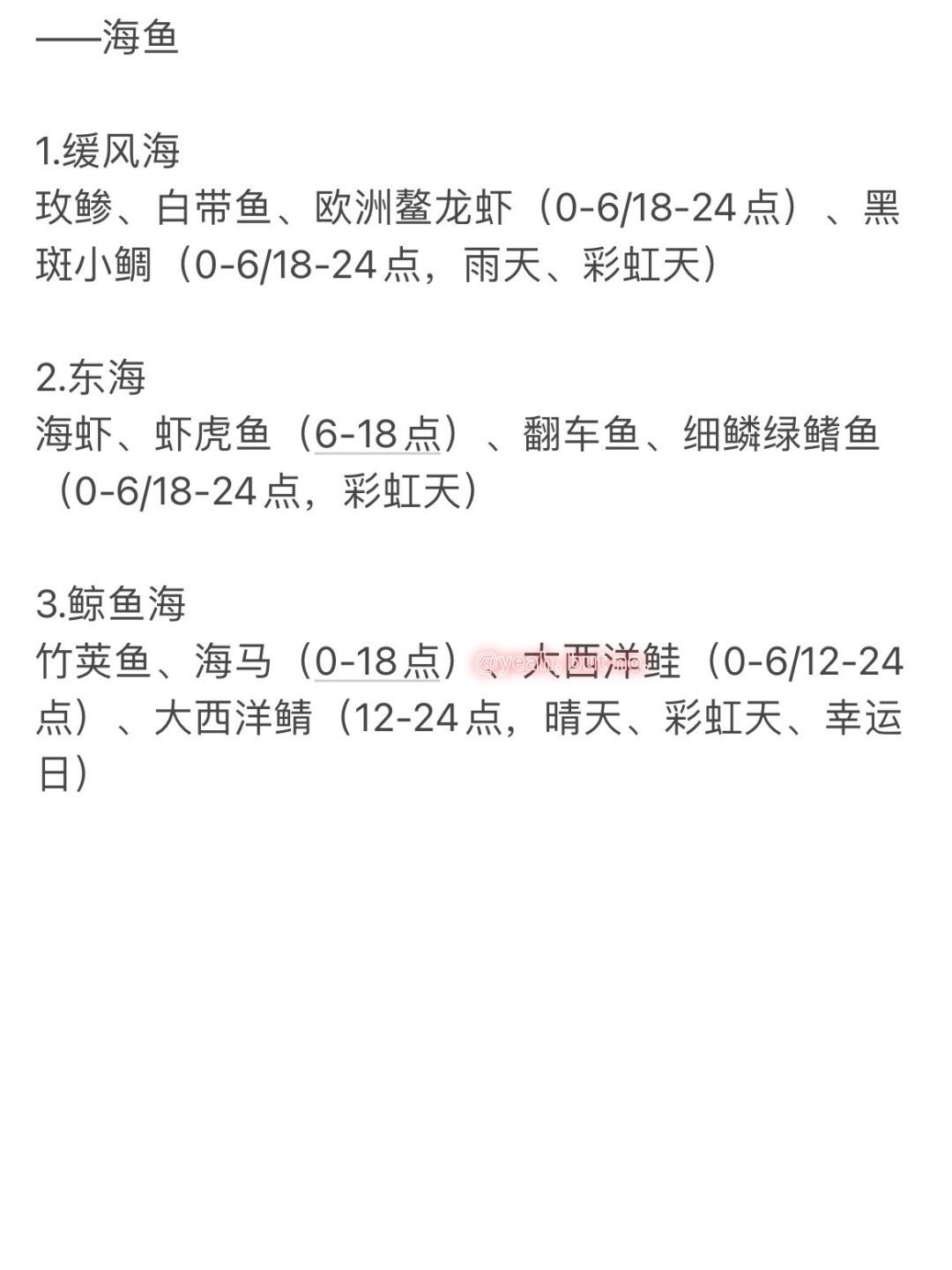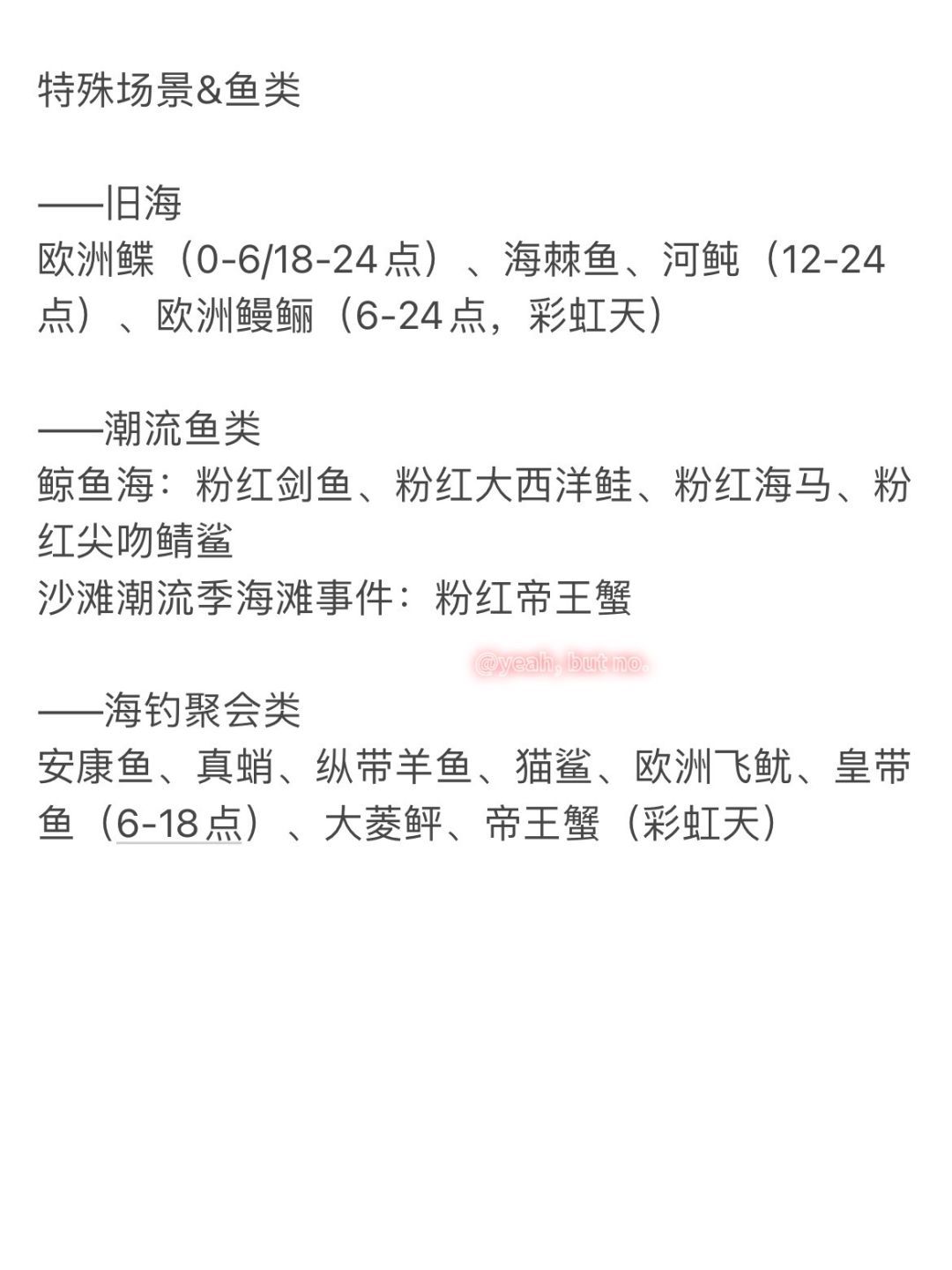 ⚠️⚠️所以攻略一下心动小镇特殊鱼类的分布和钓鱼位置(具体分类/地点见图)