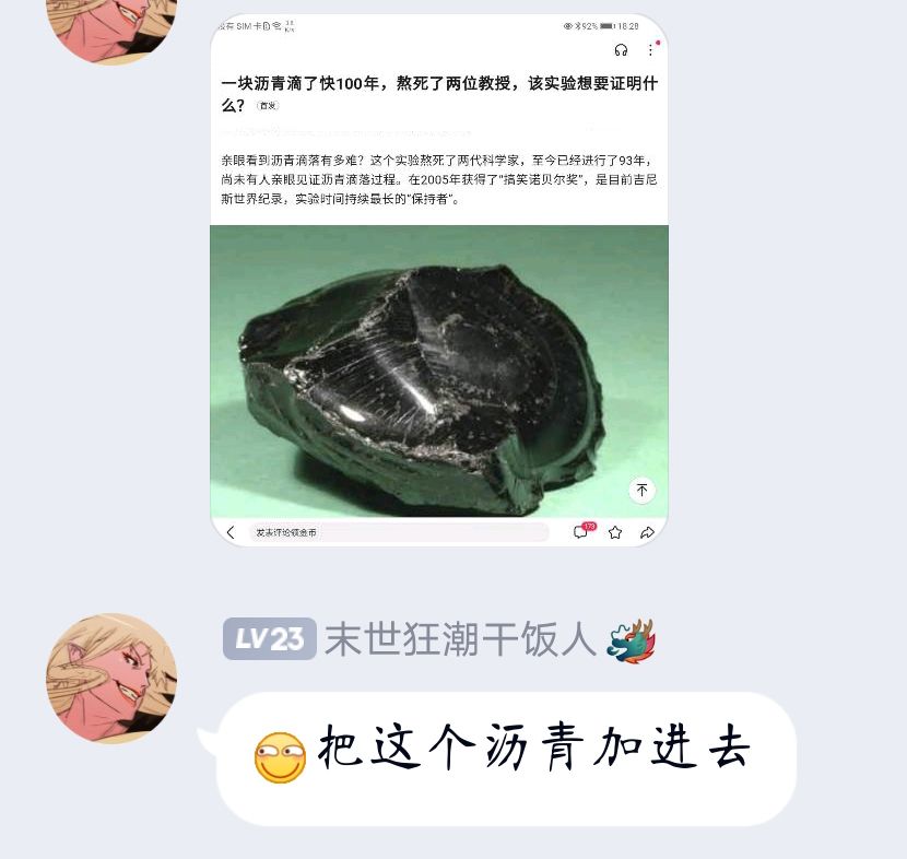 群里小伙伴让我们加一块沥青。逐渐偏向科普类了呢……就这一次哦!没有下次了!