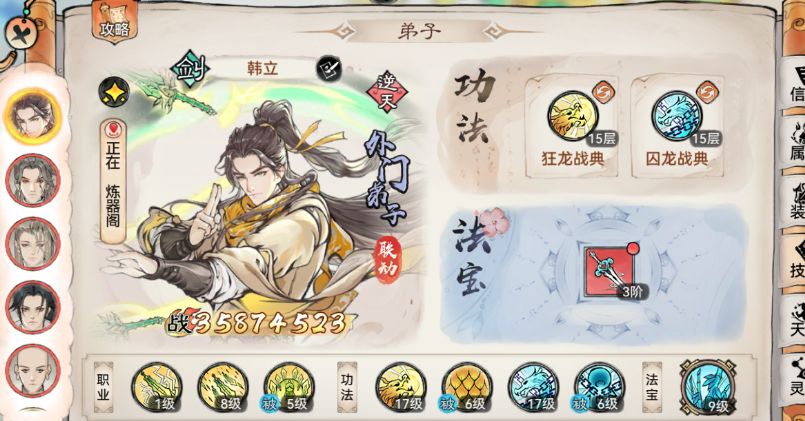 韩立阵容推荐以及装备法宝功法推荐 韩立 狂龙+刑天 法宝推荐庚精 法宝炼化物伤