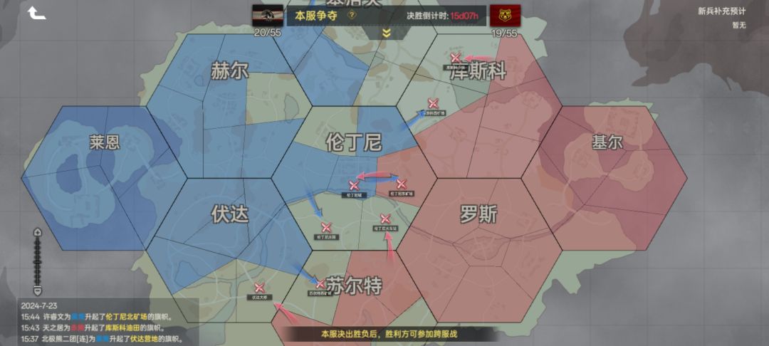 伦丁尼战区已经互相宣战,大战一触即发,各位赤熊黑鹰速回各自领土修建耐久和复活次数。