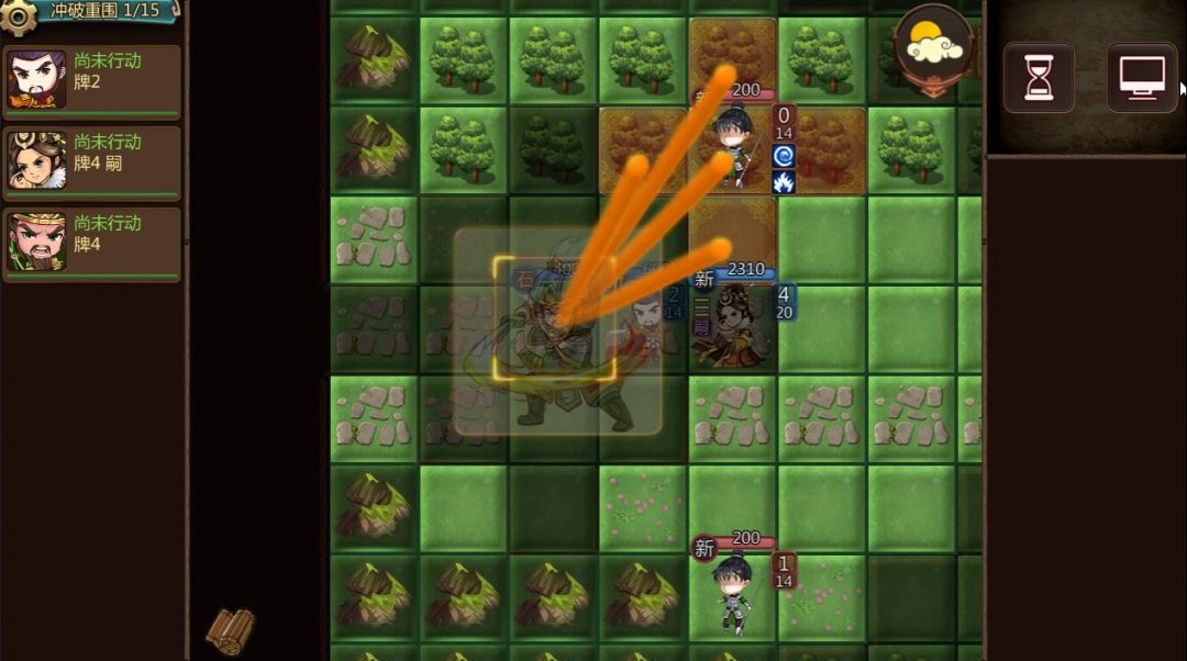 6."弩车"(1)效果调整只能对同行列的单一目标攻击,攻击对该方向内2-5(原4)距离所有目标生效。