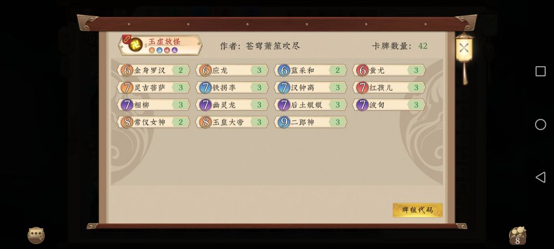 分享一下玉虚宫的万能卡组
