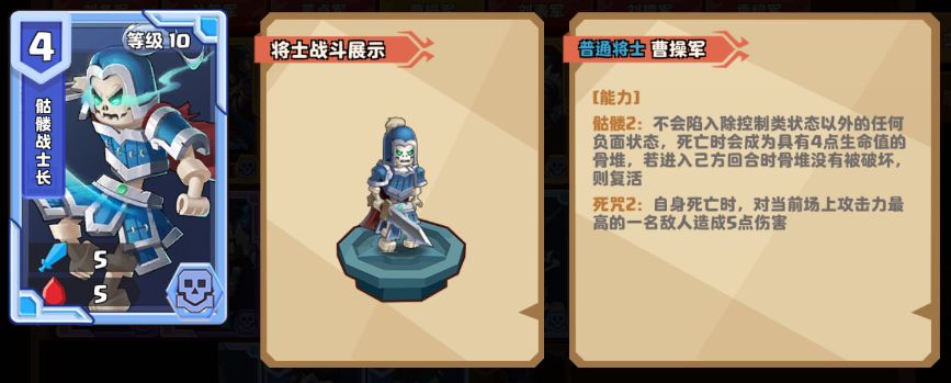 当然,没有司马懿,又或是司马懿等级低于4级的主公,星酱推荐携带高等级的骷髅斗士/骷髅战士长:只要快攻将士的伤害打不死骷髅,强弩营就只能击杀骷髅无法解决骨堆,就能实现无限阻挡攻击了。如果是骷髅战士长的话,还能用死咒造成伤害,加速送走强弩营。
