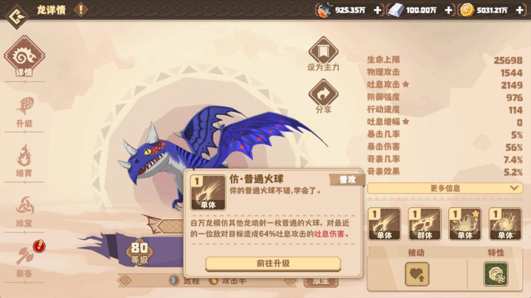 【最佳繁育被动技能】:吐息增幅*速度、火焰精通