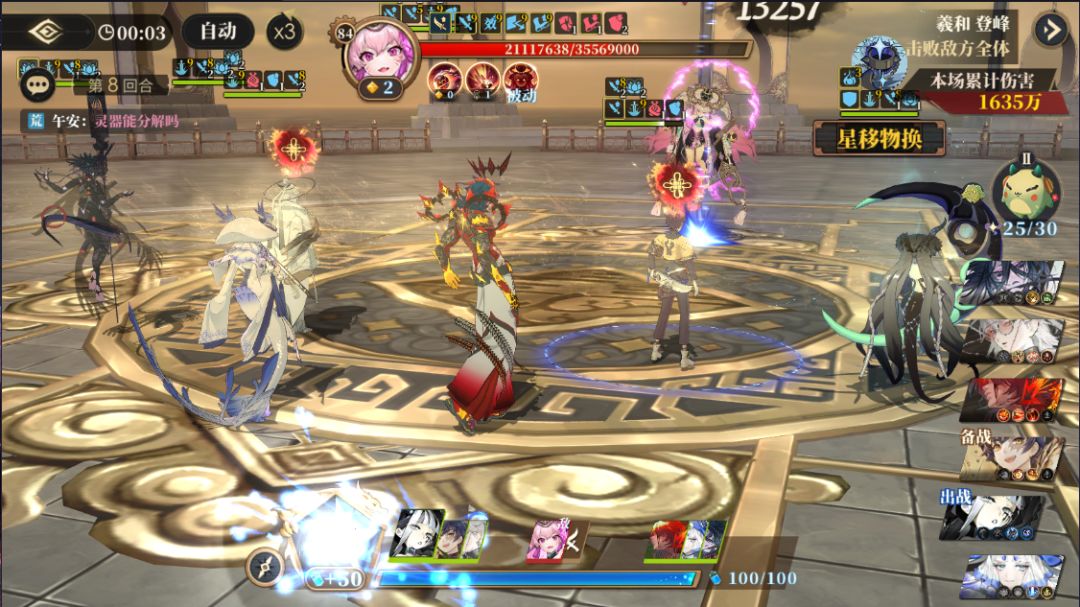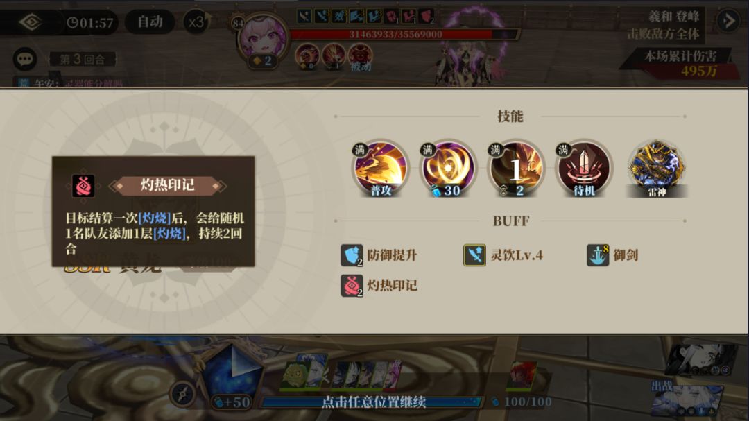 面对羲和的<灼热印记>,需要注意及时驱散已有的灼烧效果,否则在<灼热印记>的加持之下,一旦有镜灵携带了3层或者以上的灼烧效果,基本会直接被灼烧致死。