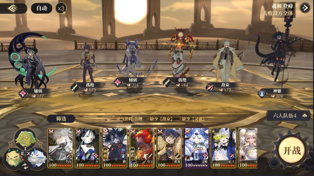 如果仍然有生存压力,还是建议夕+文瑶+3输出,补齐大禹保证存活。