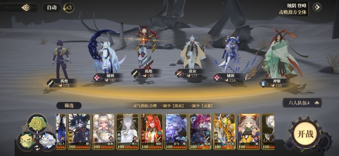 PS:夕、文瑶等辅弼角色四级尽量点满,增加灵气回复,保证输出时灵气充裕;