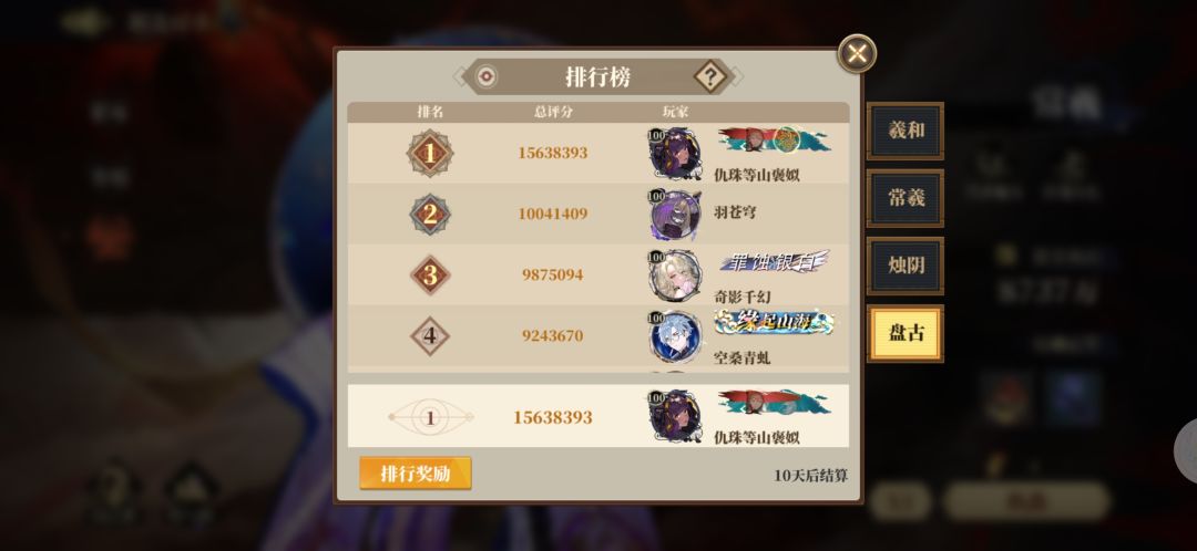 PS:盘古灵气消耗较大,搭配英招/青鸟时,需要保证四极属性中的灵气回复属性在90%(2层四极满及以上)。