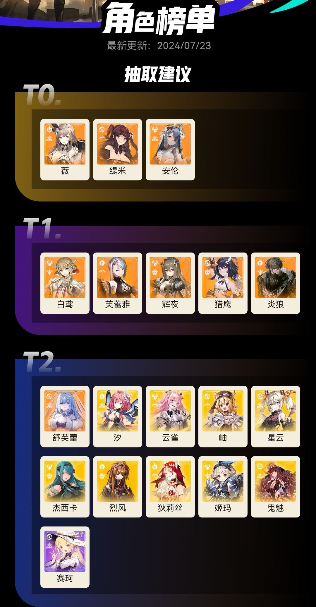 唯一4星奶 汐 ,4星坚甲 烈风 听说和辉夜一起强度爆炸,4星坚甲 杰西卡(3命质变),其他只是补空位输出,那个高命用那个,3星奶 赛珂 (满命可用)