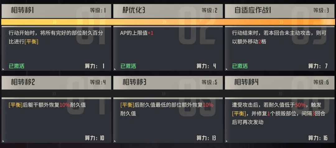 然后γ1区是更加偏向于防守的效果,其中【平衡】这个效果具有一定的价值,同时拉高算力上限后对于绫波零的抗伤的确会有很大的帮助。
