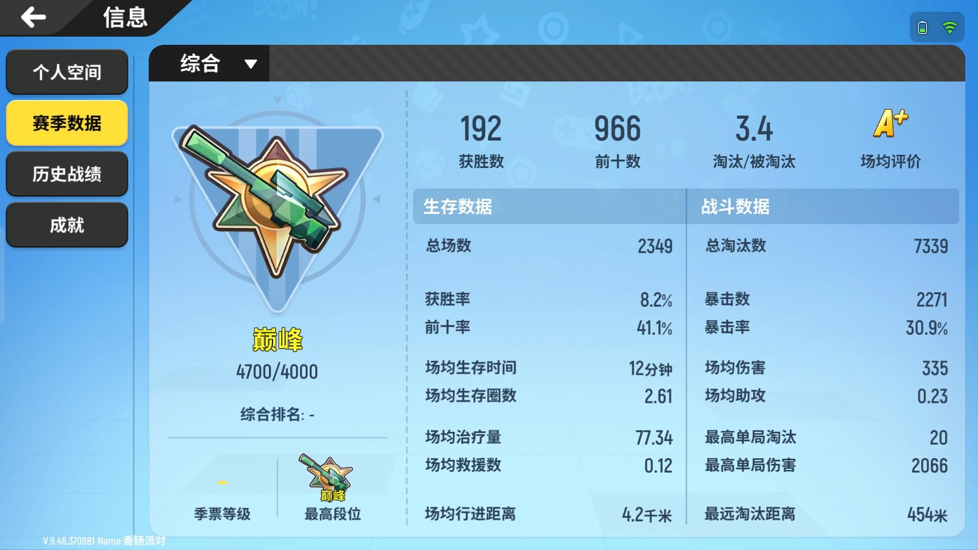 这是我的数据 有点小菜 尤其是kd 🌚