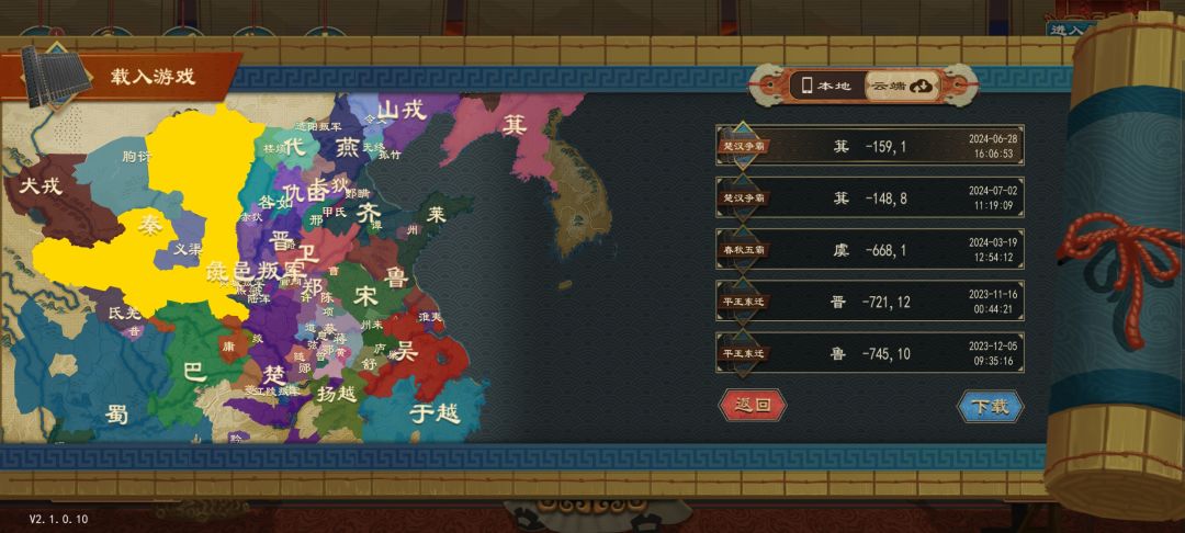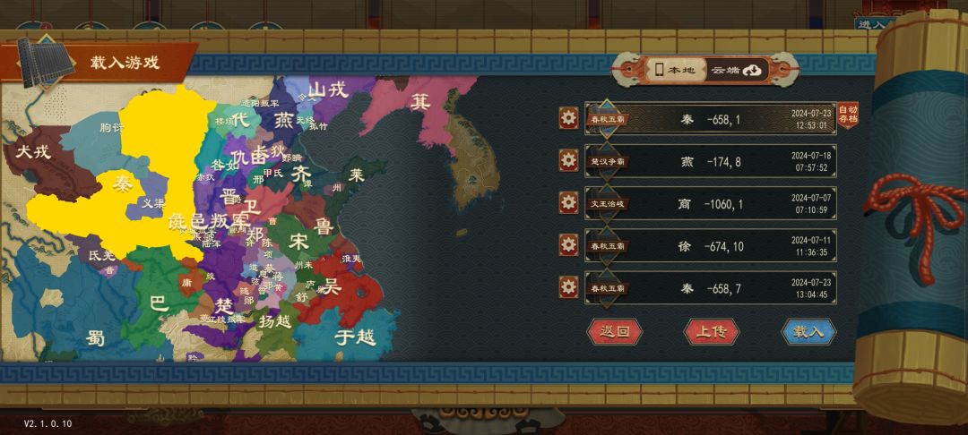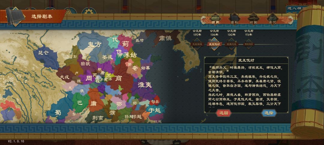 开始游戏,整个游戏的中心,暂时只能选族域是:中夏、东西南北夷、蛮夷的国家