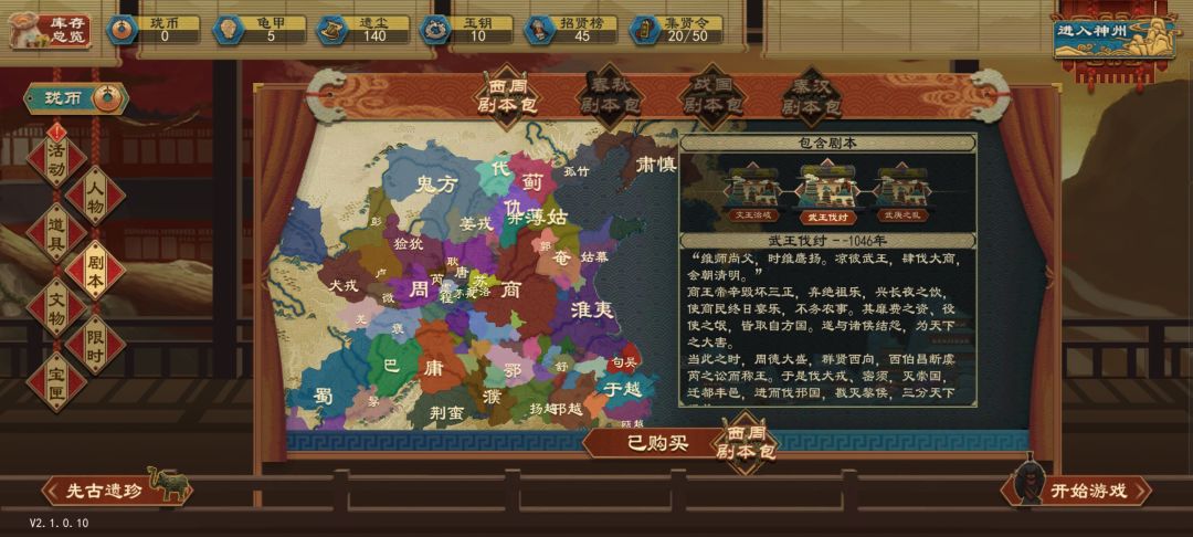不购买剧本包就只能游玩四个剧本,每个剧本包一个。匈奴与西域只有秦汉剧本才能打开